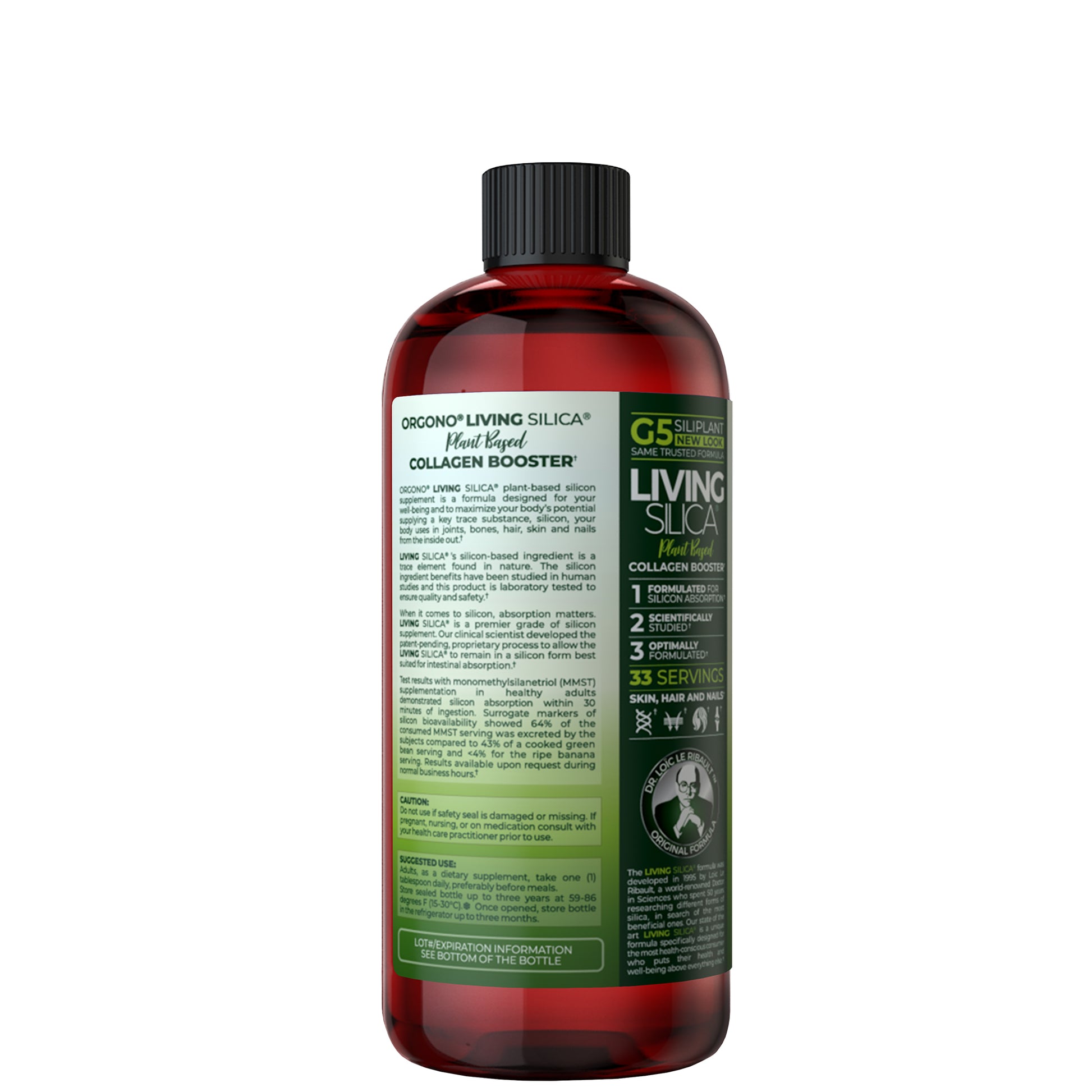 LIVING SILICA® is a doctor-formulated, professional-grade supplement designed to support your natural healthy collagen production. Formulated in 1994 by Sc. D. Loïc Le Ribault, and with more than 30 years in the market, LIVING SILICA® pioneered a proprietary process known as Heritage Concentrate™. Heritage Concentrate™is theproprietary process used across all LIVING SILICA® products. It raises the solubility limit of silicon (Si) and maintains it in a small, monomeric, and well-absorbed form for optimal intestinal absorption. This unique process ensures that you get the most out of every dose of LIVING SILICA®, making it the perfect addition to your daily health routine.